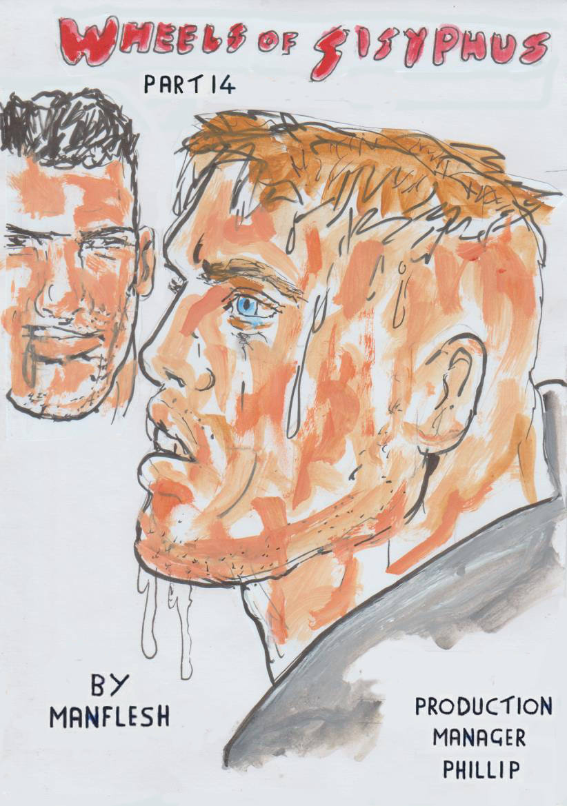PAGES 2 AND 3 FEATURES, TORQUE SHOCKING 33'S BALLS, URGING HIM TO GO FASTER, AS HE LABOURED TO TURN HIS GRIND WHEEL. IN THE BACK GROUND, JIMENEZ SHOUTING, TO 32 TO GO FASTER.
