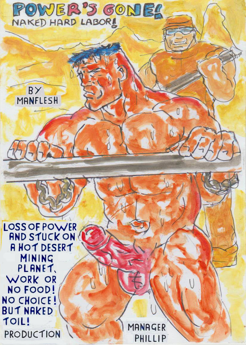 Latest male illustrated wrestling storybook 'Wrestling Ensign part 2 enter the Labyrinth part 2:2 Prey of the Alien Neanderthals' €10.00 storybook 7 on the Manflesh illustrated story book list, on the Manflesh illustrated story book page. It has 14 full colour graphic images by Manflesh.