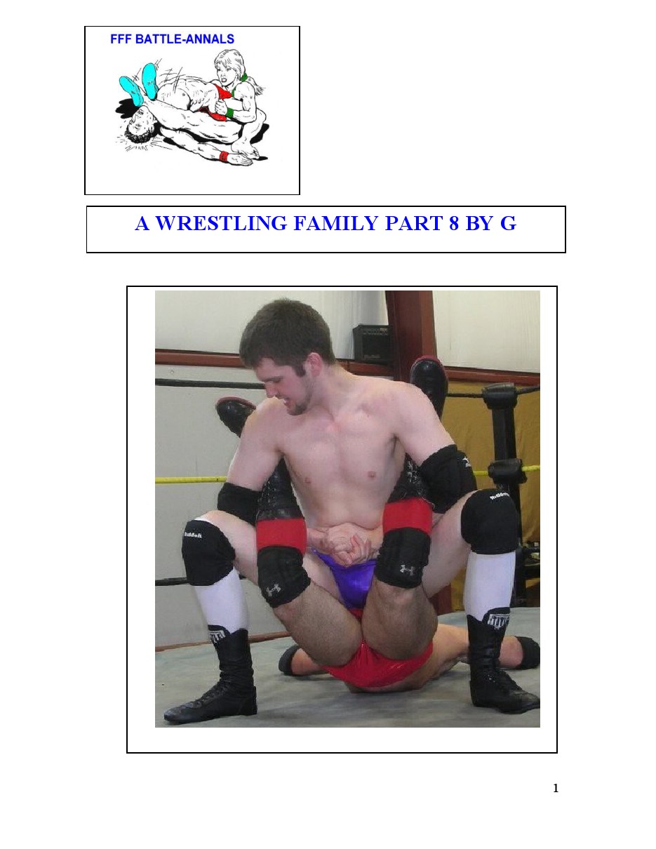 9 FAMILY WRESTLING A SPECIAL MATCH. THE NELSONS A WRESTLING FAMILY TWENTY YEAR OLD DAUGHTER MONICA IS OFFERED A SPECIAL MATCH BY HER PROMOTER A DOUBLE HANDICAP MATCH AGAINST TWO OLDER SENIOR MALE WRESTLERS SHE HAD TO DEFEAT BOTH OF THEM TO WIN BUT EITHER OF THEM CAN DEFEAT HER TO WIN. AFTER A FAMILY DISCUSSION IT AGREED TO LET MONICA TAKE THE OFFER. HER OPPONENTS WILL BE VANCE MCCOOL FORTY TWO YEARS OLD AND GENO CONFORTTI FORTY. THEY WRESTLE A S COOL AND COMFORTABLE AND ARE FIVE TIMES WORLD TAG TEAM CHAMPIONS. MONICA IS WRESTING FOR THE MONEY A BIG PURSE IF SHE CAN BEAT BOTH OF THEM AND THE MEN ARE WRESTLING FOR A GOOD PAYOUT AND THE CHANCE TO CONTINUING WRESTLING PROFESSIONALLY. THE REFEREE INTRODUCES THE WRESTLERS AS THEY STAND IN THE RING. MONICA IS DRESSED IN PURPLE BRA AND PANTIES WITH GOLD FLAMES ACROSS THEM BLACK FISHNET STOCKINGS AND SHINY PURPLE BOOTS AND RING JACKET. VANCE AND GENO WEAR HIGH CUT LIGHT BLUE SPANDEX TRUNKS WITH SHINY BLUE WRESTLING BOOTS AND BLUE RING JACKETS. “LADIES AND GENTLEMEN THIS IS THE MAIN EVENT IT IS A SPECIAL HANDICAPPED/TAG TEAM MATCH”, THE REFEREE ANNOUNCED. “IN THE RED CORNER NEEDING TO BEAT BOTH MEN TO WIN THE MATCH SHE IS ONE OF THE STARS OF THE FAMILY WRESTLING LEAGUE PLEASE WELCOME TWENTY YEAR OLD OLD MONICA NELSON”, HE ADDED. “AND IN THE BLACK CORNER HER OPPONENTS; THEY ARE THE FIVE TIME WORLD TAG TEAM CHAMPIONS VANCE MC COOL AND GENO CONFORTTI COOL & COMFORTABLE!!!” , THE REFEREE STATED.