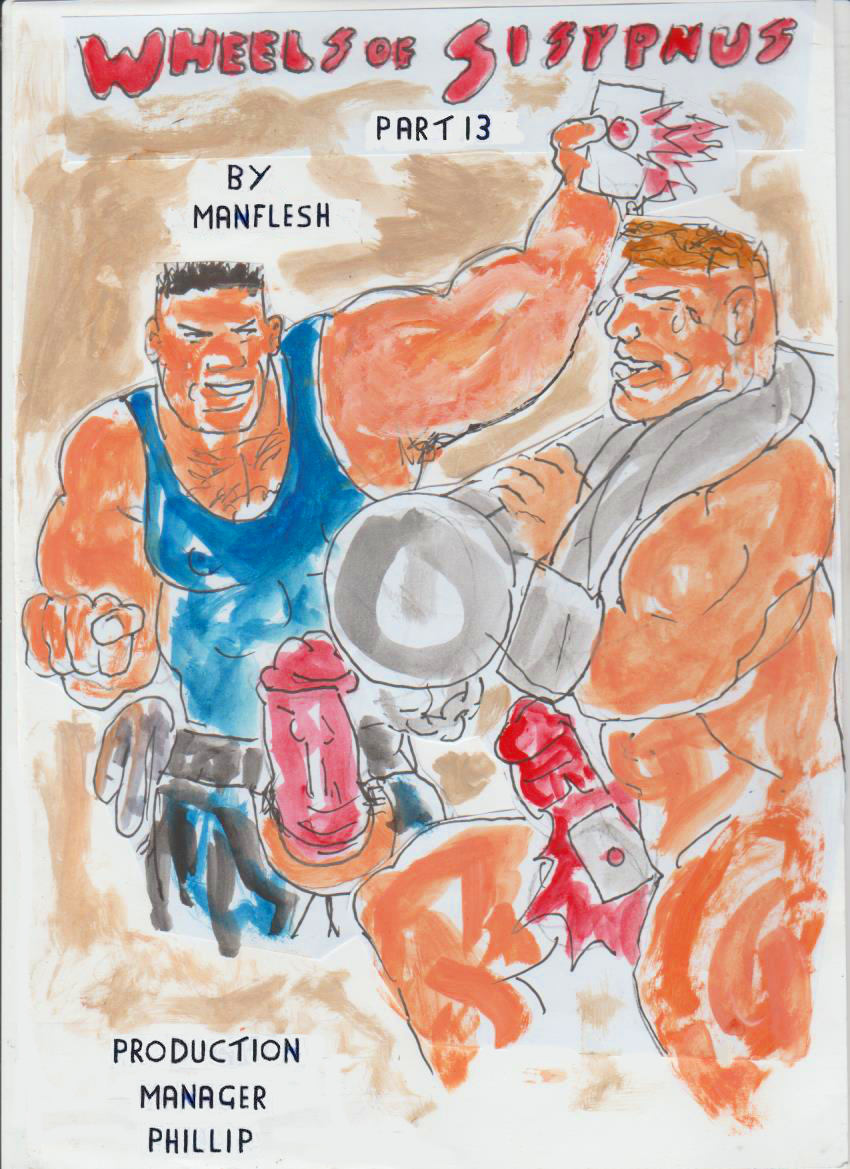 15 HAYDEN'S WHEELS OF SISYPHUS PART 13. WITHOUT FURTHER ADO THE GAMES BEGAN. “ON YOUR MARKS, GET SET, GO”, JIMENEZ SHOUTED. CONVICT 32 WAS CAUGHT BY SURPRISE, SCREAMED OUT. JIMENEZ USED HIS BULL WHIP, MAKING CONVICT 32, LET OUT A SCREAM. THE BULLWHIP, DREW BLOOD, ON CONVICT 32'S HIPS. “FASTER 32”, JIMENEZ DEMANDED, CRACKING HIS BULLWHIP. “PUSH”, SHOUTED TORQUE. TORQUE PRESSED HIS REMOTE CONTROL, GIVING A LEVEL FIVE SHOCK, TO 33'S BALLS. IN THE BACK GROUND, JIMENEZ SAW THIS. “FASTER, FASTER”, HE SHOUTED, TO CONVICT 32. CONVICT 33 SCREAMED OUT AND PUSHED, WITH ALL HIS MUSCULAR STRENGTH. TORQUE SCREAMED, AT CONVICT 33, AS 33, STRUGGLED, TO USE, EVERY SLAB OF MUSCLE, TO TURN THE WHEEL. ON 33, SWEAT PORED, OUT OF EVERY POUR. “USE FULL STRENGTH TO PUSH, THAT'S 20”, TORQUE URGED. A PAINFUL CRY COULD BE HEARD. AS WARDEN JIMENEZ, CRUELLY LASHED, CONVICT 32'S BACK. TORQUE SAW, CONVICT 32'S BACK HAD MANY WELTS. A MOMENT LATER, HE HEARD JIMENEZ SAY 30. THAT MEANT 33 WAS LEADING, “WE ARE ON 40 NOW”, TORQUE SAID.