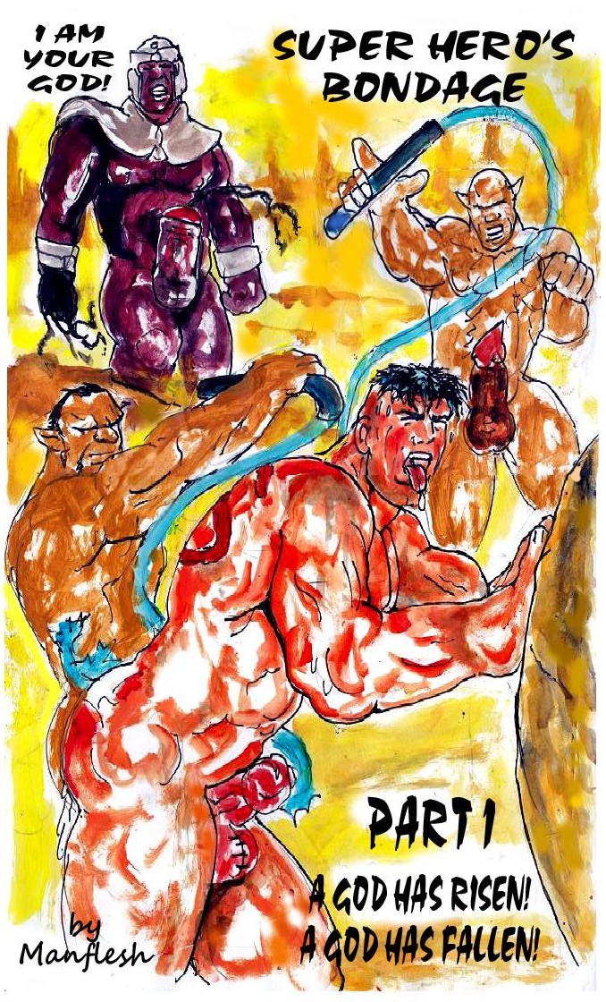 24 SUPER HEROES BONDAGE PART 1, A GOD HAS RISEN, A GOD HAS FALLEN. SIX SUPER HEROES, HAD GONE MISSING FOR MONTHS. THEY WERE SUPERMAN, BATMAN, ROBIN, GREEN LANTERN, CAPTAIN AMERICA, AND NOW THOR. THOR WAS SUCKED THROUGH A WORM HOLE INTO THE PAST. THOR CRASHED ON THE GROUND OF BORAK'S HOME PLANET. BORAK REGARDED HIMSELF AS THE GOD OF GODS, WITH POWER OVER ALL MATTER, SUPER HEROES HIS NAKED SLAVES. AS HE SEARCHED BORAK'S HOME PLANET, THOR FOUND THE MISSING SUPER HEROES. HE WAS SHOCKED I SEE THAT THE SUPER HEROES WERE NAKED AND BRANDED.
